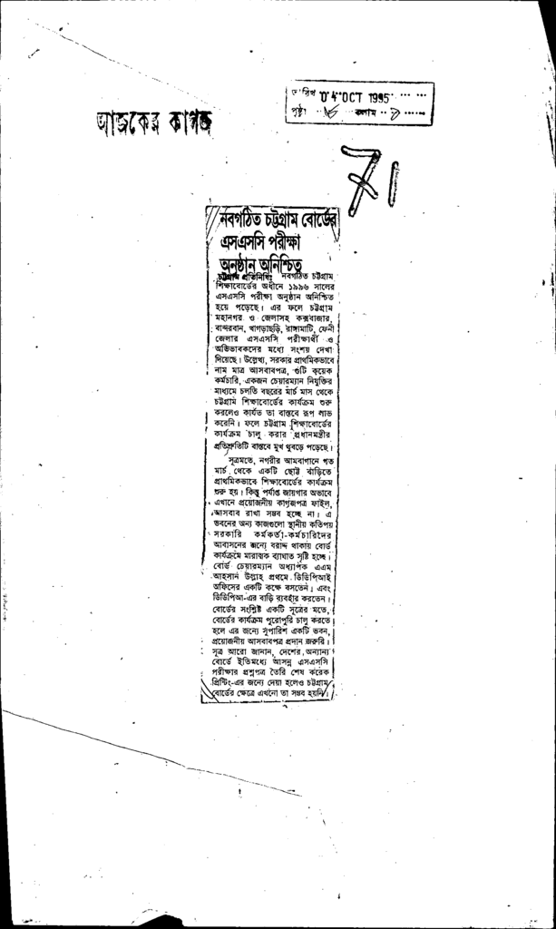 নবগঠিত চট্রগ্রাম বোর্ডের এসএসসি পরীক্ষা অনুষ্ঠান অনিশ্চিত Published on Newspaper দৈনিক আজকের কাগজ Category Public Examination Public Examination Others Download