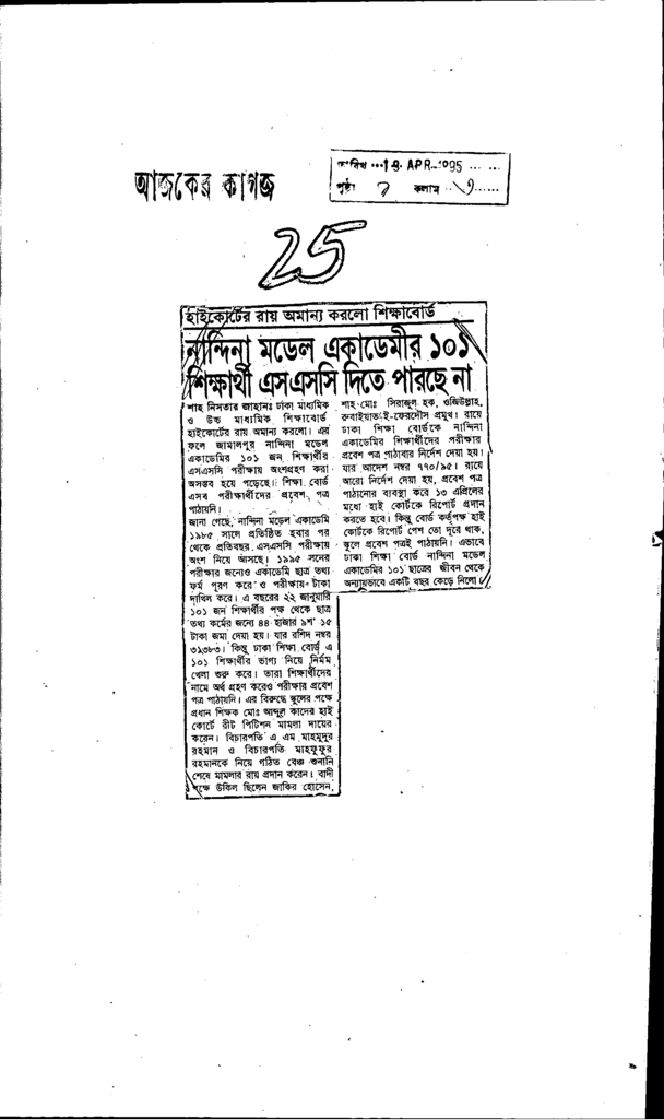 নান্দিনা মডেল একাডেমীর 101 শিক্ষার্থী এসএসসি দিতে পারছে না Published on Newspaper দৈনিক আজকের কাগজ Category Public Examination Public Examination Others Download