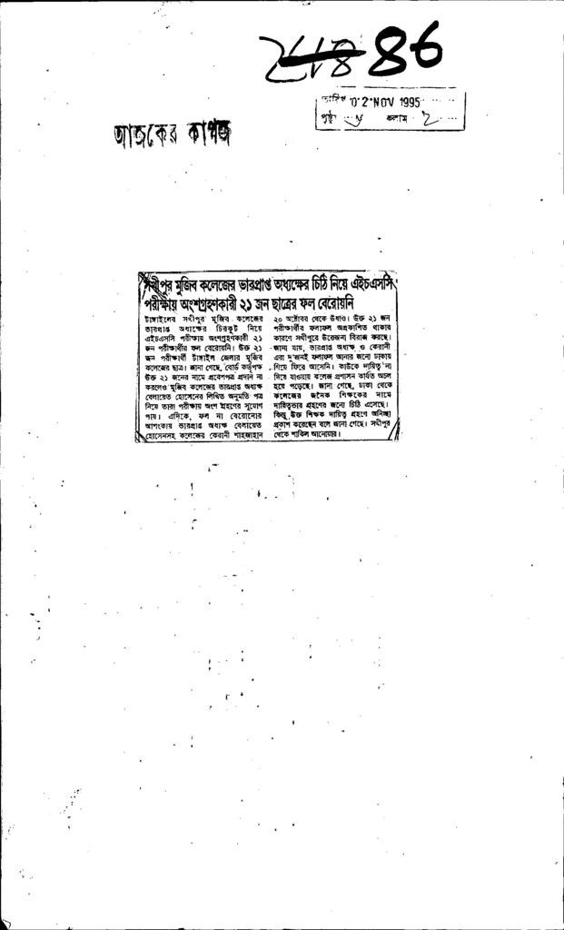 সখীপুর মুজিব কলেজের ভারপ্রাপ্ত অধ্যক্ষের চিঠি নিয়ে এইচএসসি পরীক্ষায় অংশগ্রহণকারী 21 জন ছাত্রের ফল বেরোয়নি Published on Newspaper দৈনিক আজকের কাগজ Category Public Examination Public Examination Others Download
