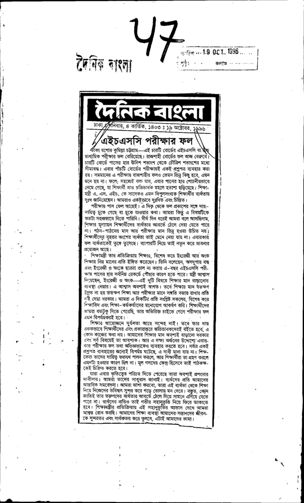 এইচএসসি পরীক্ষার ফল Published on Newspaper দৈনিক বাংলা Category Public Examination Public Examination Others Download
