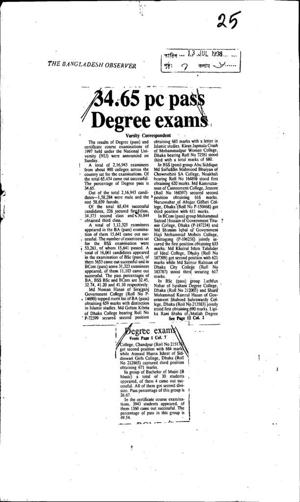 34.65 pc pass degree exams Published on Newspaper The Bangladesh Observer Category Public Examination Public Examination Others Download
