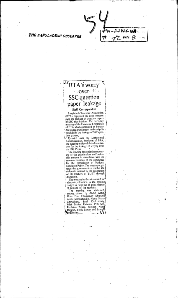 Bta's worry over ssc question paper leakage Published on Newspaper The Bangladesh Observer Category Public Examination Public Examination Others Download