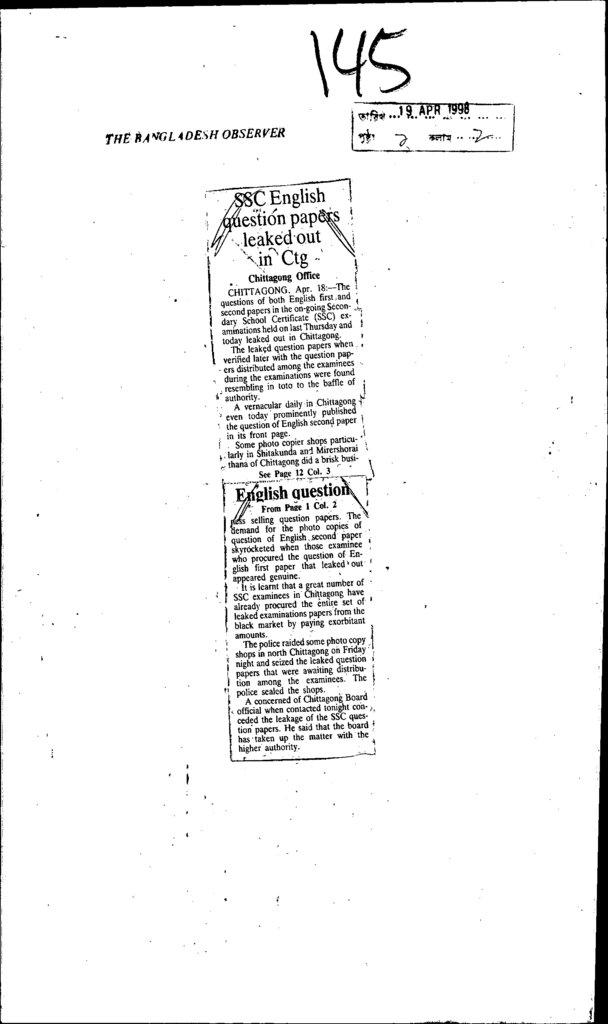 Ssc english question papers leaked out in ctg Published on Newspaper The Bangladesh Observer Category Public Examination Public Examination Others Download