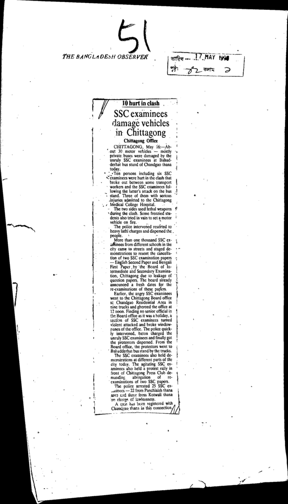 Ssc examinees iamage vehicles in chittgong Published on Newspaper The Bangladesh Observer Category Public Examination Public Examination Others Download