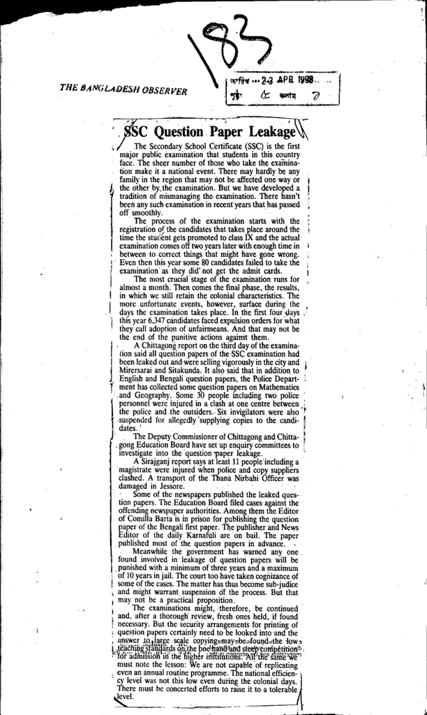 Ssc question paper leakage Published on Newspaper The Bangladesh Observer Category Public Examination Public Examination Others Download