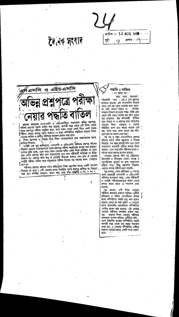 অভিন্ন প্রশ্ন পত্রে পরীক্ষা নেয়ার পদ্ধতি বাতিল
