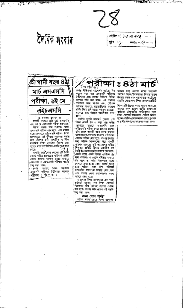 আগামী বছর ৪ঠা মার্চ এসএসসি পরীক্ষা, ৬ই মে এইচ এসসি