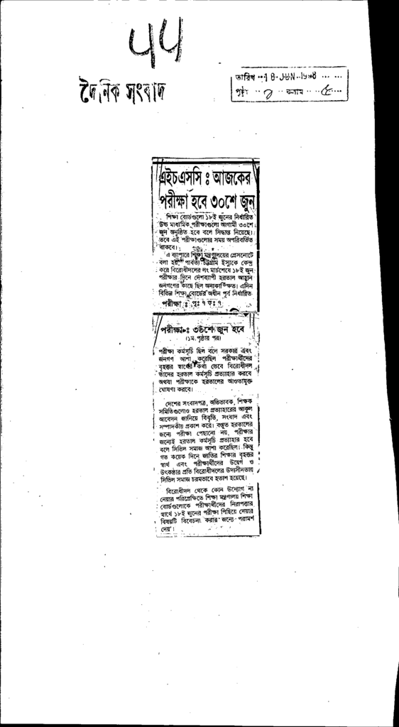 এইচএসসি ঃ আজকের পরীক্ষা হবে ৩০শে জুন Published on Newspaper দৈনিক সংবাদ Category Public Examination Public Examination Others Download