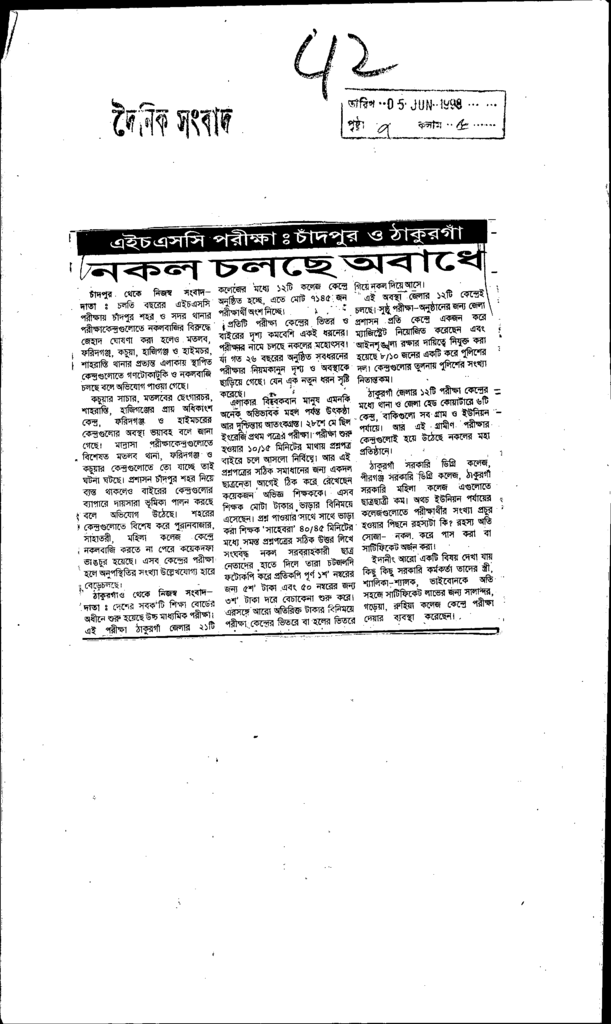 এইচ এসসি পরীক্ষাঃ চাঁদপুর ও ঠাকুরগাঁ