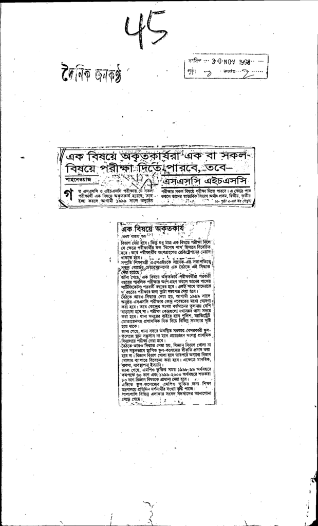 এক বিষয়ে অকৃতকার্যরা এক বাা সকল বিষয়ে পরীক্ষা দিতে পারবে তবে Published on Newspaper দৈনিক জনকণ্ঠ Category Public Examination Public Examination Others Download
