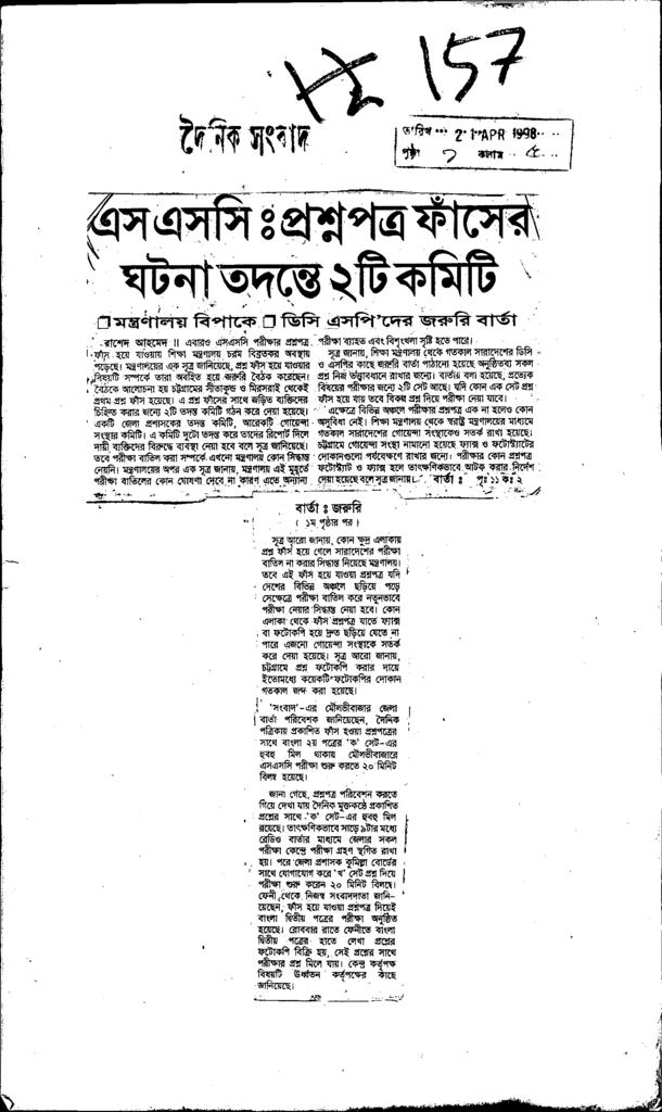 এসএসসিঃ প্রশ্নপত্র ফাঁসের ঘটনা তদন্তে ২টি কমিটি Published on Newspaper দৈনিক সংবাদ Category Public Examination Public Examination Others Download