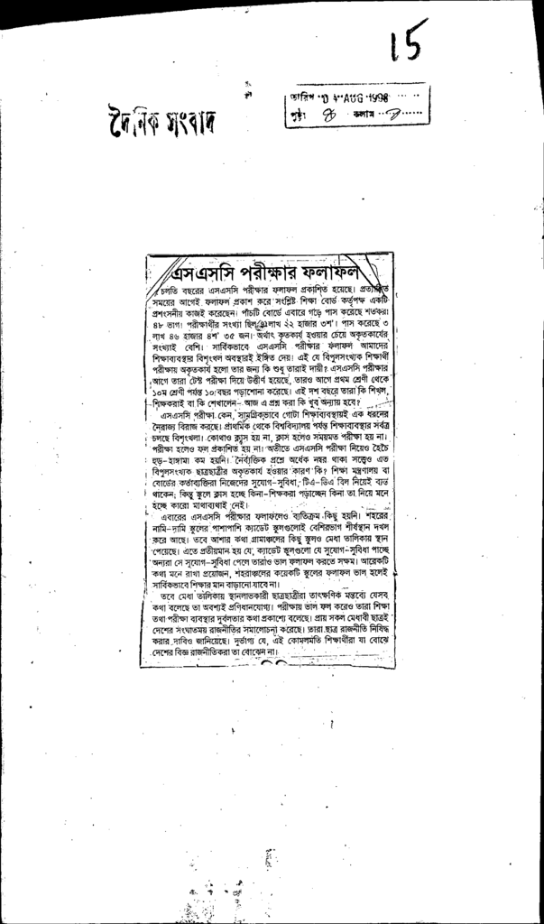 এসএসসি পরীক্ষার ফলাফল Published on Newspaper দৈনিক সংবাদ Category Public Examination Public Examination Others Download
