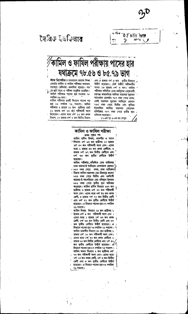 কামিলও ফাযিল পরীক্ষায় পাসের হার যথাক্রমে ৭৮.৫৬ও ৮৫.৭৯ Published on Newspaper দৈনিক ইনকিলাব Category Public Examination Public Examination Others Download