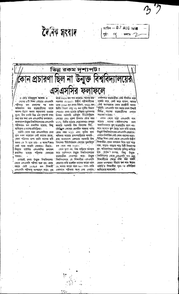 কোন প্রচরণা ছিল না উন্মুক্ত বিশ্ববিদ্যালয়ের এসএসসির ফলাফলে Published on Newspaper দৈনিক সংবাদ Category Public Examination Public Examination Others Download