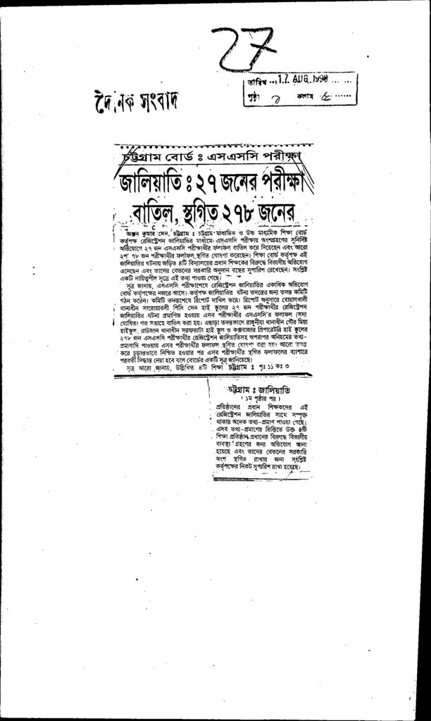 চট্রগ্রাম বোর্ডঃ এসএসসি পরীক্ষা Published on Newspaper দৈনিক সংবাদ Category Public Examination Public Examination Others Download