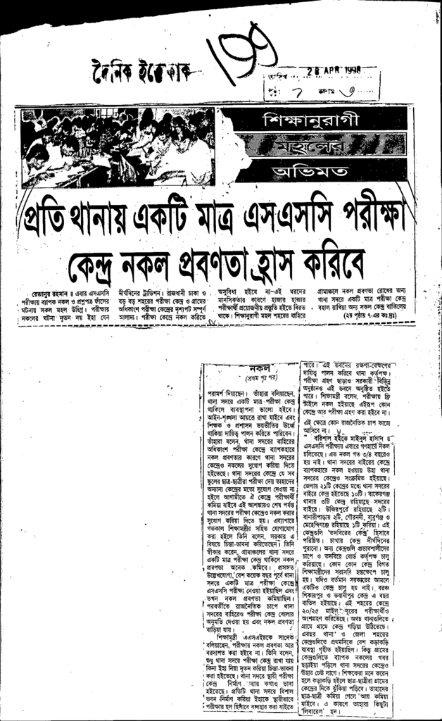 প্রতি থানায় একটি মাত্র এসএসসি পরীক্ষা কেন্দ্র নকল প্রবণতা হ্রাস করিবে Published on Newspaper দৈনিক ইত্তেফাক Category Public Examination Public Examination Others Download