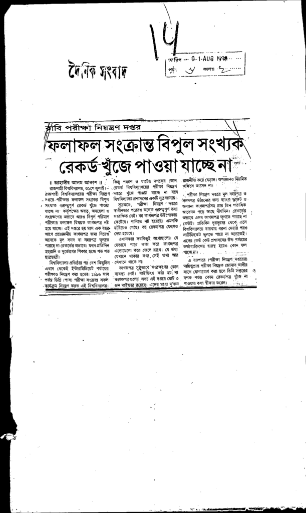ফলাফল সংক্রান্ত বিপুল সংখ্যক রেকর্ড খুঁজে পাওয়া যাচ্ছে না Published on Newspaper দৈনিক সংবাদ Category Public Examination Public Examination Others Download