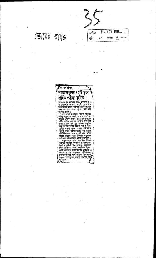 শাহজাদপুরের ৪২টি স্কুলে বার্ষিক পরীক্ষা স্থগিত Published on Newspaper দৈনিক ভোরের কাগজ Category Public Examination Public Examination Others Download