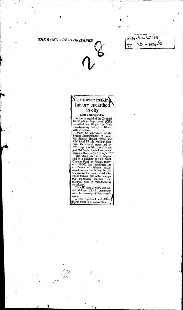 Certificate making factory unearthed in city Published on Newspaper The Bangladesh Observer Category Public Examination Public Examination Others Download