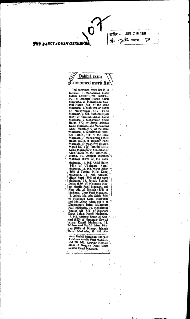 Combined merit list Published on Newspaper The Bangladesh Observer Category Public Examination Public Examination Others Download