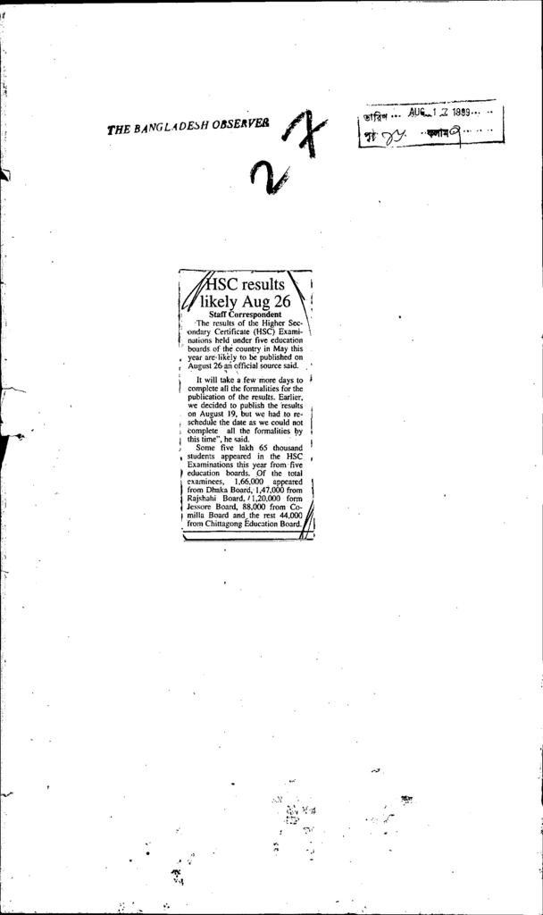 Hsc result likely aug 26 Published on Newspaper The Bangladesh Observer Category Public Examination Public Examination Others Download