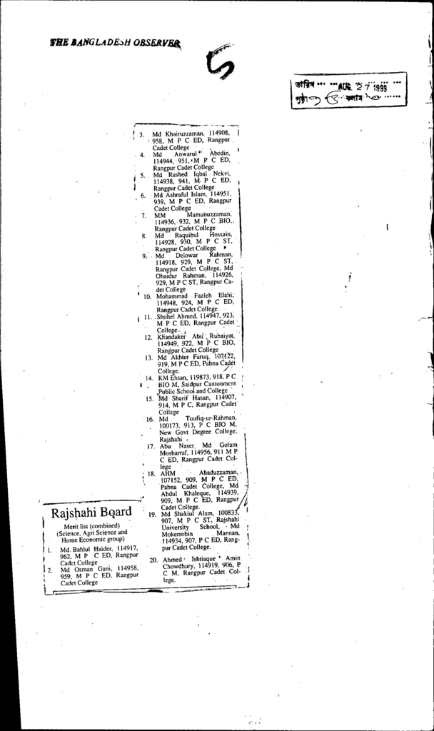 Rajshahi board Published on Newspaper The Bangladesh Observer Category Public Examination Public Examination Others Download