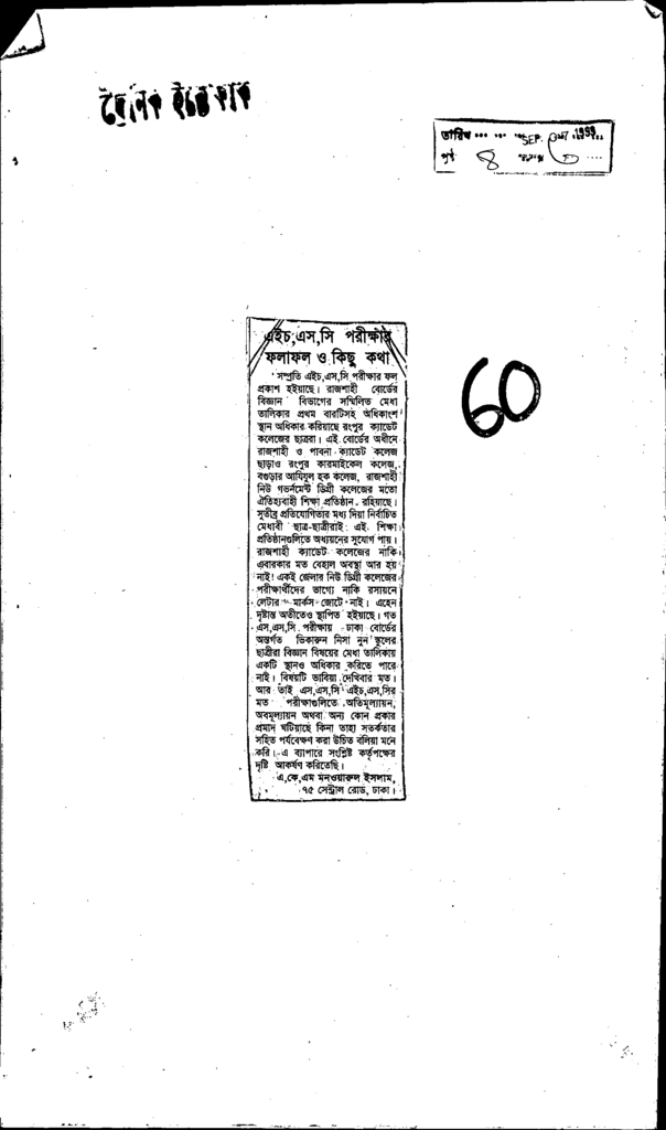 এইচ,এস,সি পরীক্ষায় ফলাপল ও কিছু কথা Published on Newspaper দৈনিক ইত্তেফাক Category Public Examination Public Examination Others Download