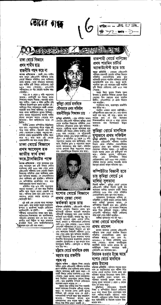এইচএসসি ৯৯ মেধাবী মুখ Published on Newspaper দৈনিক ভোরের কাগজ Category Public Examination Public Examination Others Download