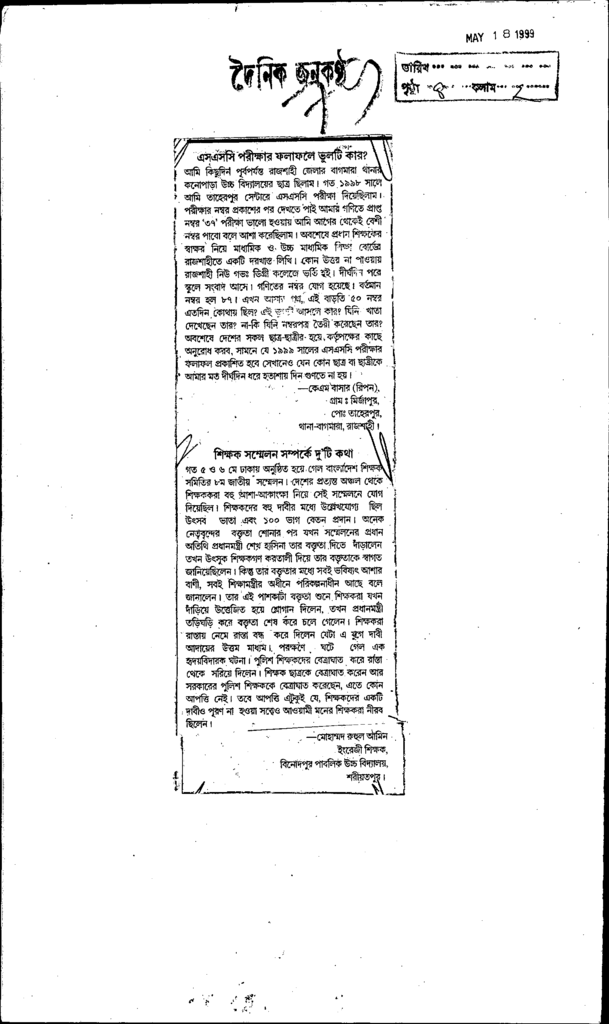 এসএসি পরীক্ষার ফলাফলে ভূলটি কার