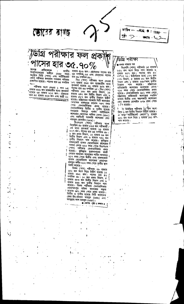 ডিগ্রী পরীক্ষার ফল প্রকাশ পাসের হার ৩৫.৭০% Published on Newspaper দৈনিক ভোরের কাগজ Category Public Examination Public Examination Others Download