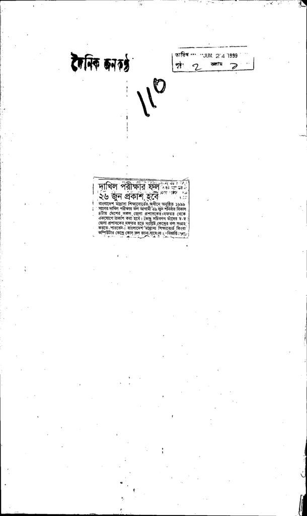 দালিক পরীক্ষার ফল ২৬ জুন প্রকাশ হবে Published on Newspaper দৈনিক জনকণ্ঠ Category Public Examination Public Examination Others Download