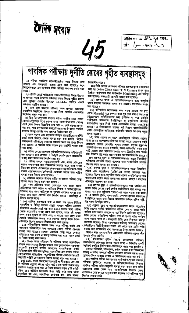 পাবলিক পরীক্ষায় দুর্নীতি রোধের গৃহীত ব্যবস্থাসমূহ