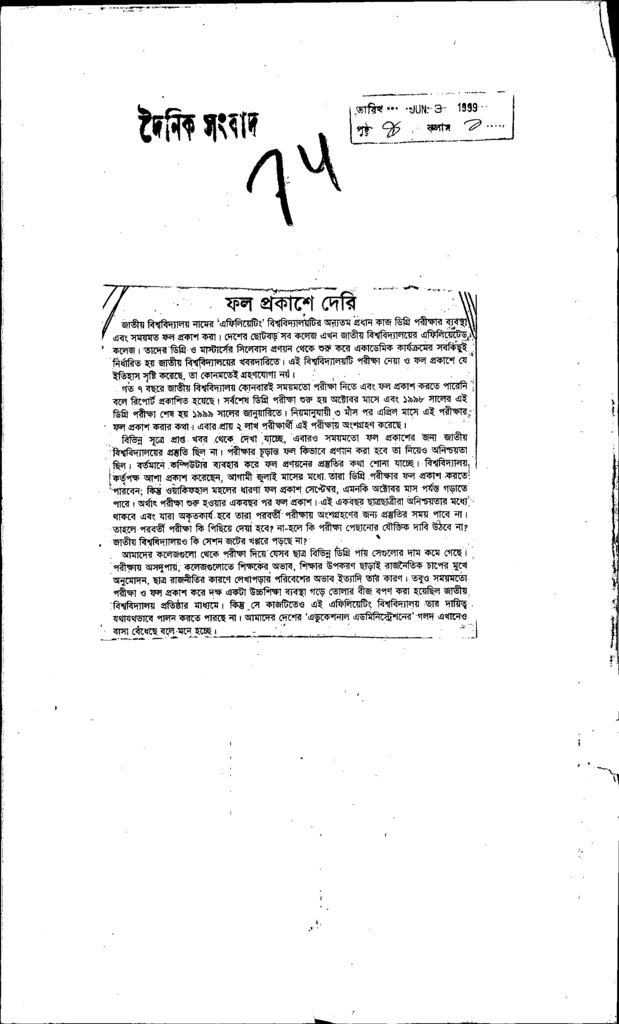 ফল প্রকাশে দেরি Published on Newspaper দৈনিক সংবাদ Category Public Examination Public Examination Others Download