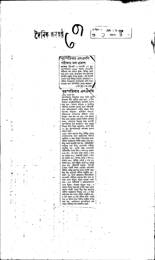 বৃহস্পতিবার এসএসসি পরীক্ষার ফল প্রকাশ Published on Newspaper দৈনিক জনকণ্ঠ Category Public Examination Public Examination Others Download