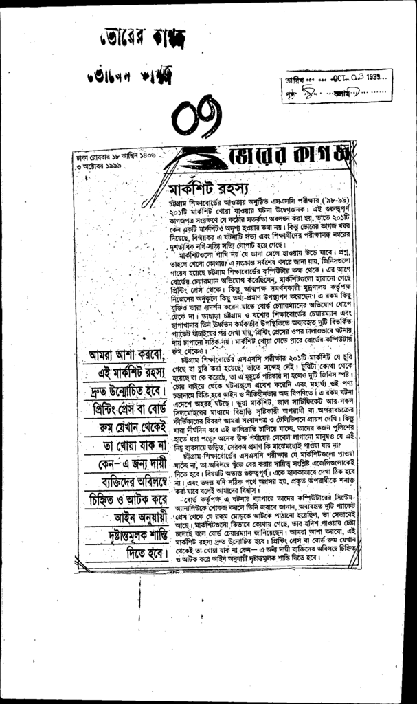 মার্কশিট রহস্য Published on Newspaper দৈনিক ভোরের কাগজ Category Public Examination Public Examination Others Download