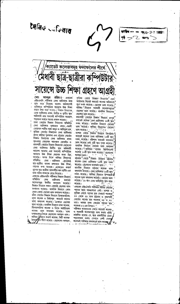 মেধাবী ছাত্র-ছাত্রীরা কম্পিউটার সায়েন্স উচ্চ শিক্ষা গ্রহণে আগ্রহী Published on Newspaper দৈনিক ইনকিলাব Category Public Examination Public Examination Others Download