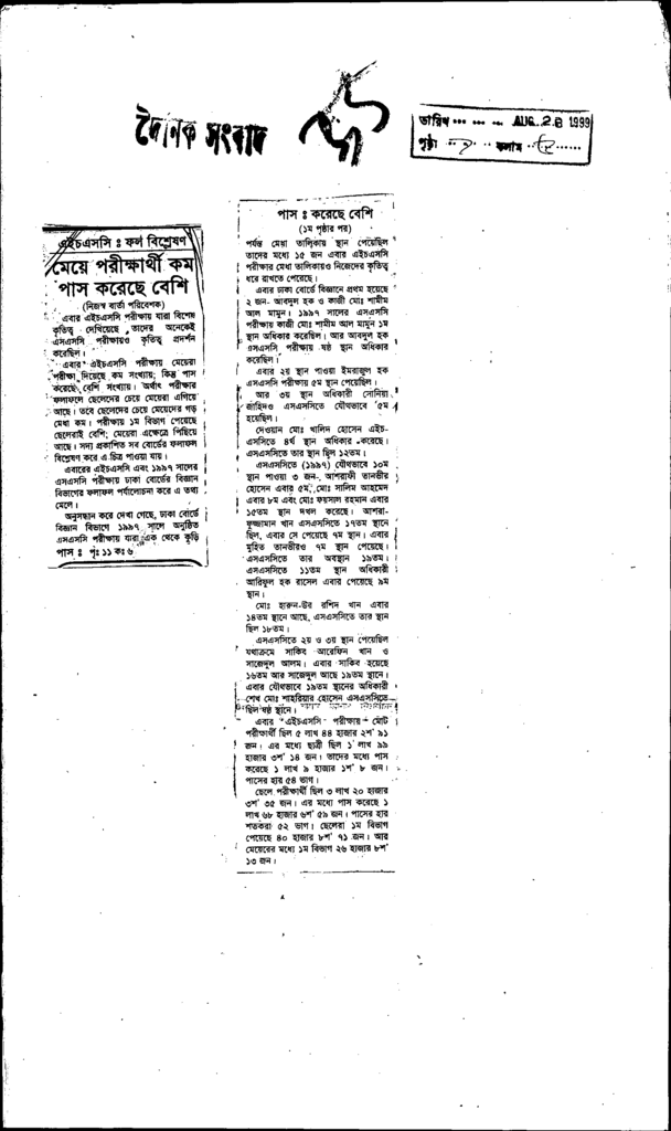 মেয়ে পরীক্ষার্থী কম পাস করেছে বেশি Published on Newspaper দৈনিক সংবাদ Category Public Examination Public Examination Others Download