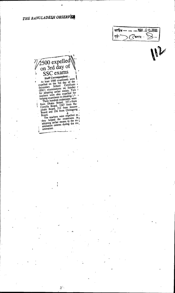 2500 expelled on 3rd day of ssc exams Published on Newspaper The Bangladesh Observer Category Public Examination Public Examination Others Download