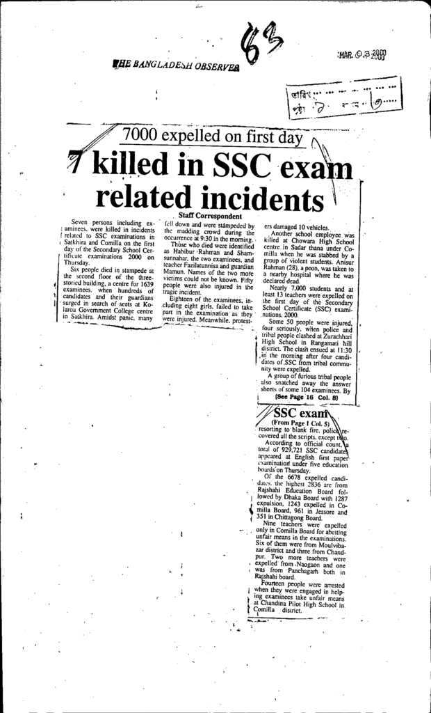 7 killed ssc exam related incidents Published on Newspaper The Bangladesh Observer Category Public Examination Public Examination Others Download