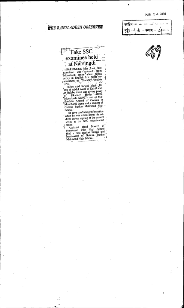 Fake ssc examinee held at narshingdi Published on Newspaper The Bangladesh Observer Category Public Examination Public Examination Others Download