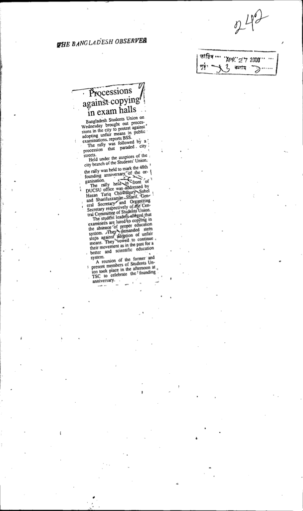 Processions agains copying in exam halls Published on Newspaper The Bangladesh Observer Category Public Examination Public Examination Others Download