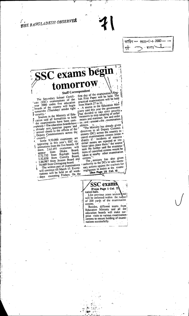 Ssc exams begin tomorrow Published on Newspaper The Bangladesh Observer Category Public Examination Public Examination Others Download
