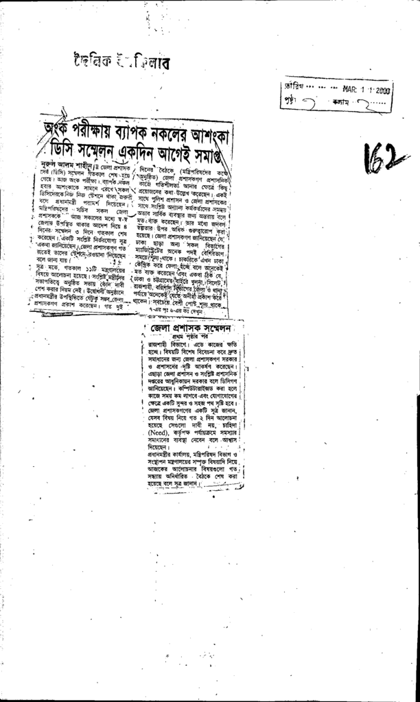 অংক পরীক্ষায় ব্যাপক নকলের আশংকা ডিসি সম্মেলন একদিন আগেই সমপ্ত