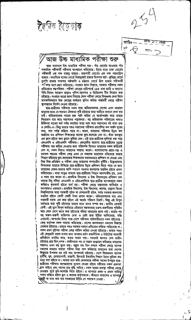 আজ উচ্চ মাধ্যমিক পরীক্ষা শুরু Published on Newspaper দৈনিক ইত্তেফাক Category Public Examination Public Examination Others Download