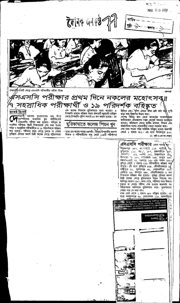 এসএসসি পরীক্ষার প্রথম দিনে নকলের মহোৎসব ৭ সহস্রাধিক পরীক্ষার্থী ও ১৯ পরিদর্শক বহিস্কৃক Published on Newspaper দৈনিক জনকণ্ঠ Category Public Examination Public Examination Others Download