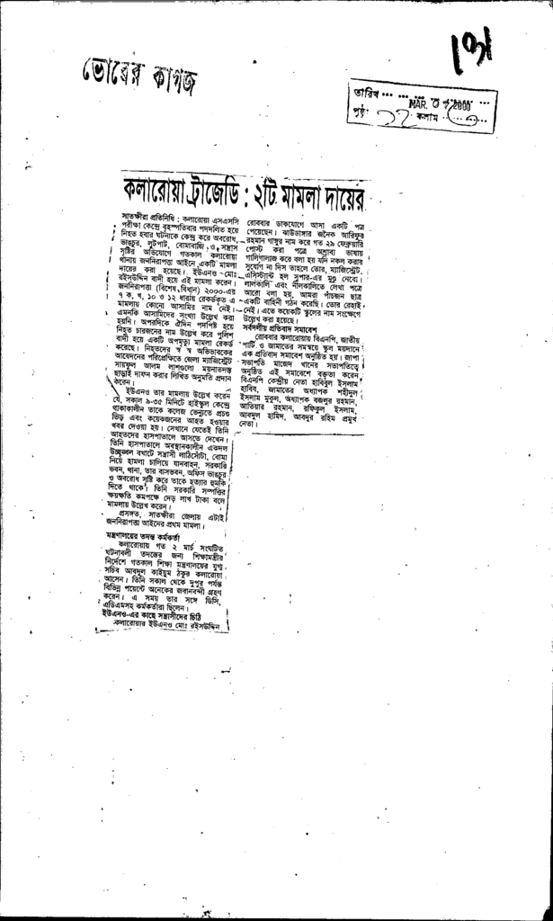 কলারোয়া ট্রাজেডি: ২টি মামলা দায়ের Published on Newspaper দৈনিক ভোরের কাগজ Category Public Examination Public Examination Others Download