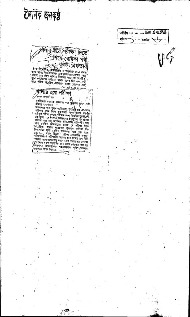 খালার হয়ে পরীক্ষা দিতে গিয়ে বোরকা পরা যুবক গ্রেফতার Published on Newspaper দৈনিক জনকণ্ঠ Category Public Examination Public Examination Others Download