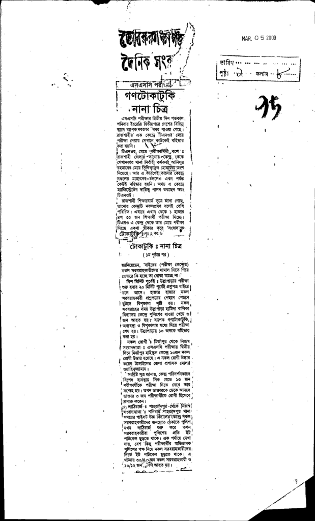 গণটোকাটুকি নানা চিত্র Published on Newspaper দৈনিক সংবাদ Category Public Examination Public Examination Others Download