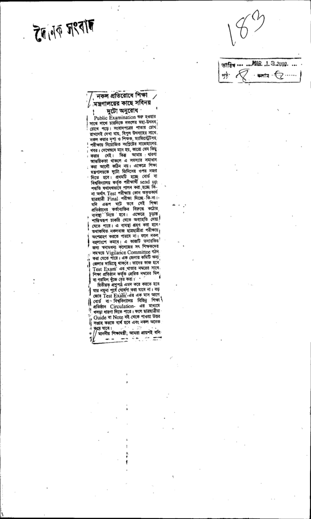 নকল প্রতিরাধ শিক্ষা মন্ত্রণালয়ের কাছে সবনিয় দুটো অনুরোধ