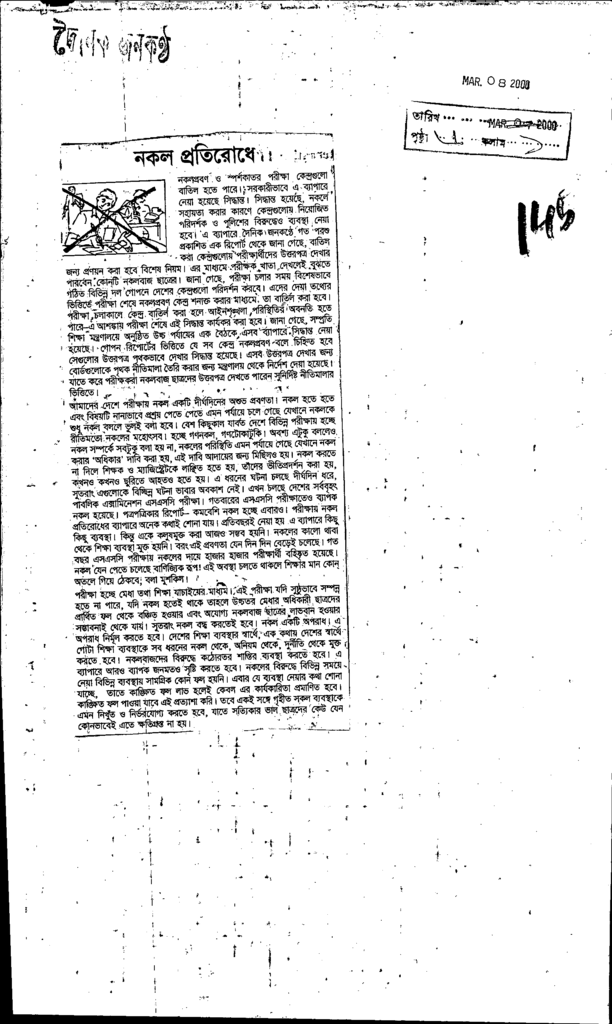নকল প্রতিরোধ Published on Newspaper দৈনিক জনকণ্ঠ Category Public Examination Public Examination Others Download
